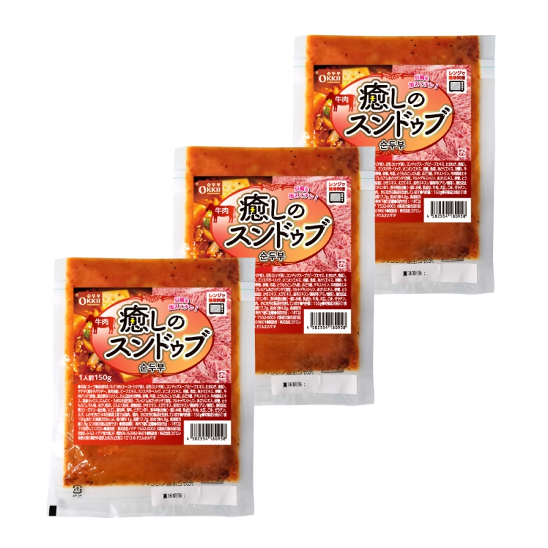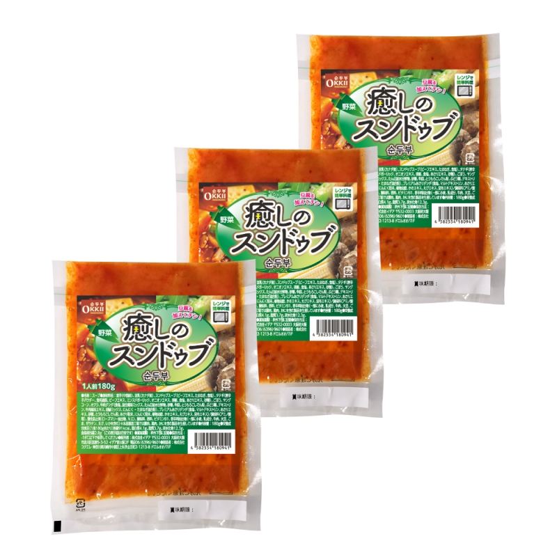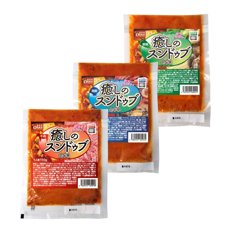 ※こちらの商品は「癒しのスンドゥブ 牛肉」「癒しのスンドゥブ 海鮮」「癒しのスンドゥブ 野菜」各1袋、計...