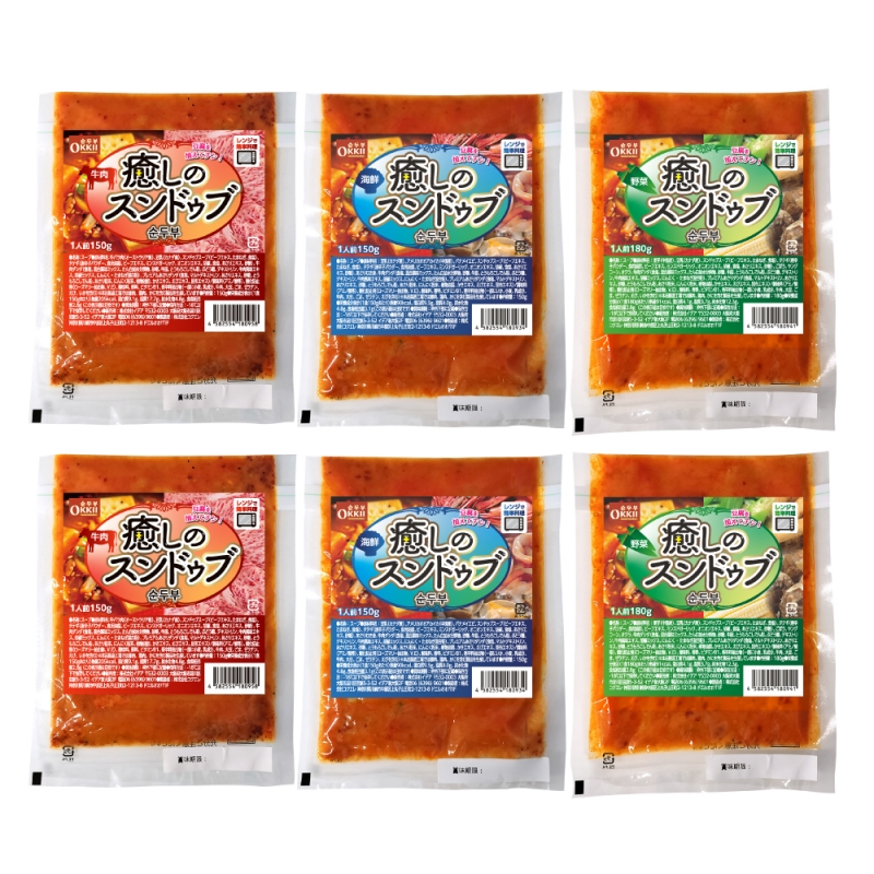 ※こちらの商品は「癒しのスンドゥブ 牛肉」「癒しのスンドゥブ 海鮮」「癒しのスンドゥブ 野菜」各2袋、計...