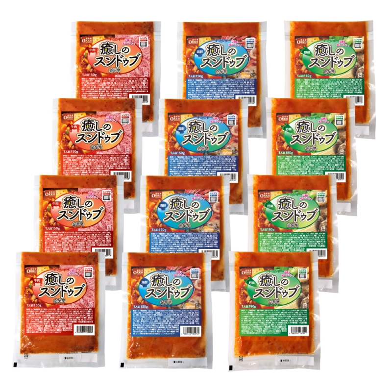 ※こちらの商品は「癒しのスンドゥブ 牛肉」「癒しのスンドゥブ 海鮮」「癒しのスンドゥブ 野菜」各4袋、計...