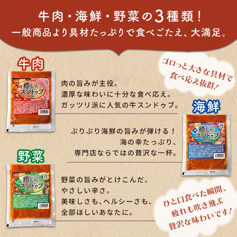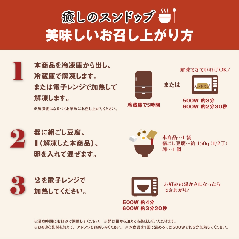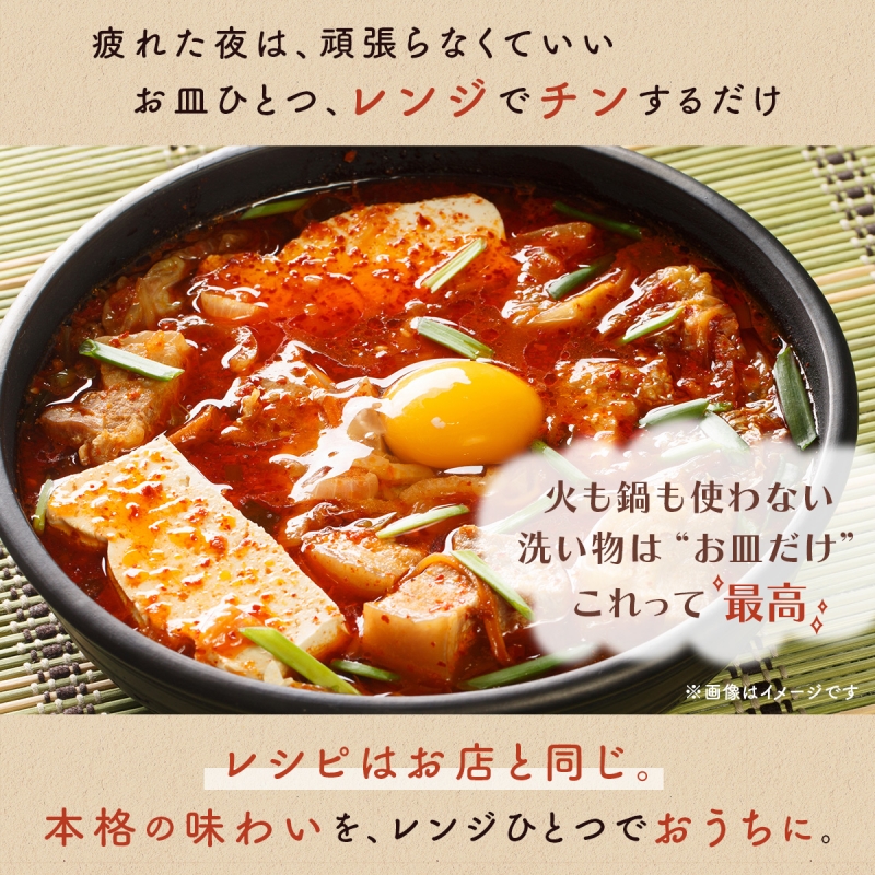 ※こちらの商品は「癒しのスンドゥブ 海鮮」3袋セットです。 疲れた日は頑張らなくていい。お皿ひとつ、電子レンジでチンするだけ。 OKKIIのスンドゥブが冷凍商品で登場。 レシピはお店と同じ。本格の味わいをレンジで。 選べる具材は「牛肉」「海鮮」「野菜」! お好みの具材をお選びください。 一般商品より具材たっぷりで食べごたえ、大満足。