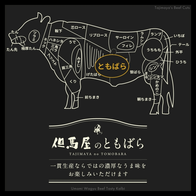 但馬血統、月齢、一貫生産、熟成と但馬屋こだわりのカルビをご家庭向けの味付けでお届けします。